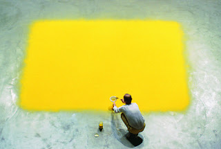 The perishable and ephemeral materials Laib emplys indicate his comfort with impermanence; he cultivates the moment. The labor that goes into Laib's art is a form of meditation, its own reward; he is content to spend countless hours collecting pollen (it can take months to fill a few jars) and then shaping it into tiny cone-shaped hills for a piece . . . that a single sneeze could blow away. Requiring a form of labor that would be impossibly tedious to most of us, Laib's work with pollen, in particular, embodies an intrinsic awareness that it will exist only as long as its creator is available to make it happen.